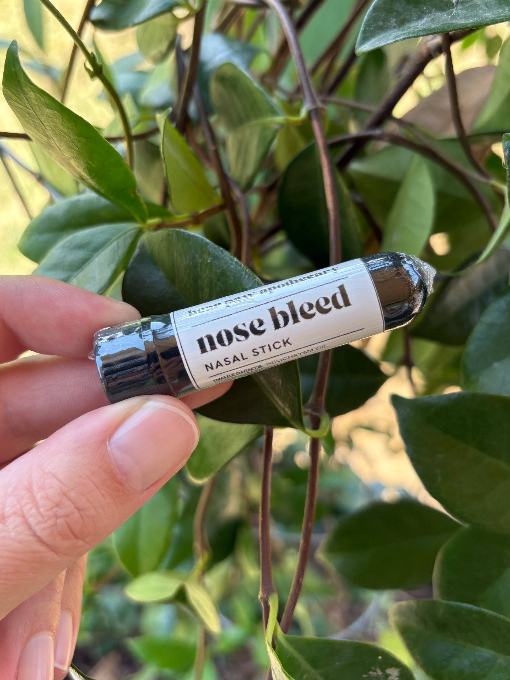 Bear Paw Apothecary's Nose Bleed Nasal Stick uses aromatherapy to provide natural relief from nose bleeds. The essential oils in this inhaler help constrict blood vessels, stopping nose bleeds before they begin. Use with caution, not a substitution to medical advice.