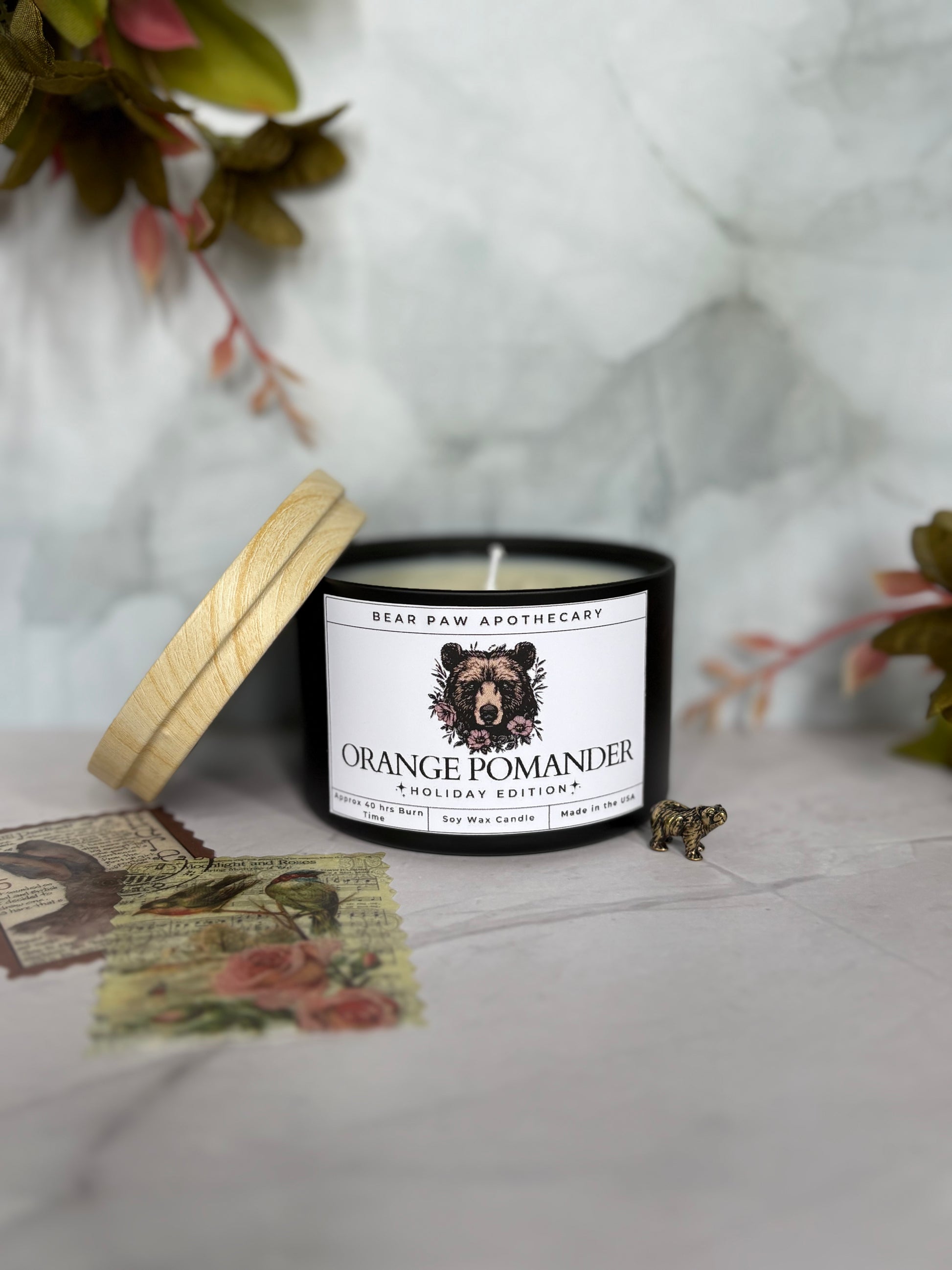 A festive, citrus-forward fragrance: peppered orange peel and crisp apple top notes are warmed by clove leaf and cinnamon, gently grounded by a soft base of tonka bean and vanilla .